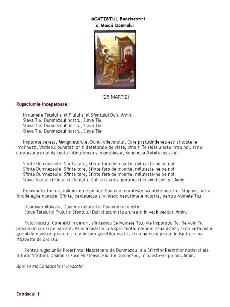 vizitati articolul complet aici : https://vdocuments.site/acatistul-sf-arhangheli-mihail-si-gavril.html Să se bucure credincioşii şi să se veselească şi nimeni să nu le stea împotrivă, ştiind că mare ajutor au de la maica domnului, maica rugăciunii şi a evlaviei, care ascultă cu îndurare cererile înălţate din adâncul inimii: Acatistul maicii domnului bucuria tuturor celor necajiti. Sa se bucure credinciosii si sa se veseleasca si nimeni sa nu le stea împotriva, stiind ca mare ajutor au de la maica domnului nostru, maica rugaciunii si a evlaviei, care asculta cu îndurare cererile înaltate din adâncul.