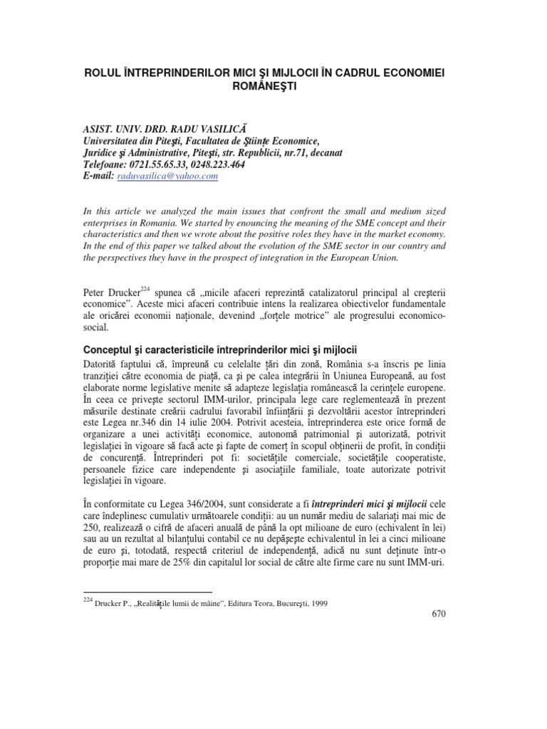 În românia, întreprinderile mici și mijlocii sunt definite, conform legii nr.346/2004. Proiect intreprinderile mici si mijlocii motor al dezvoltarii economice economie 199761. Întreprinderile mici și mijlocii (prescurtat imm) sunt companiile care au cifra de afaceri și numărul de salariați sub o anumită limită.