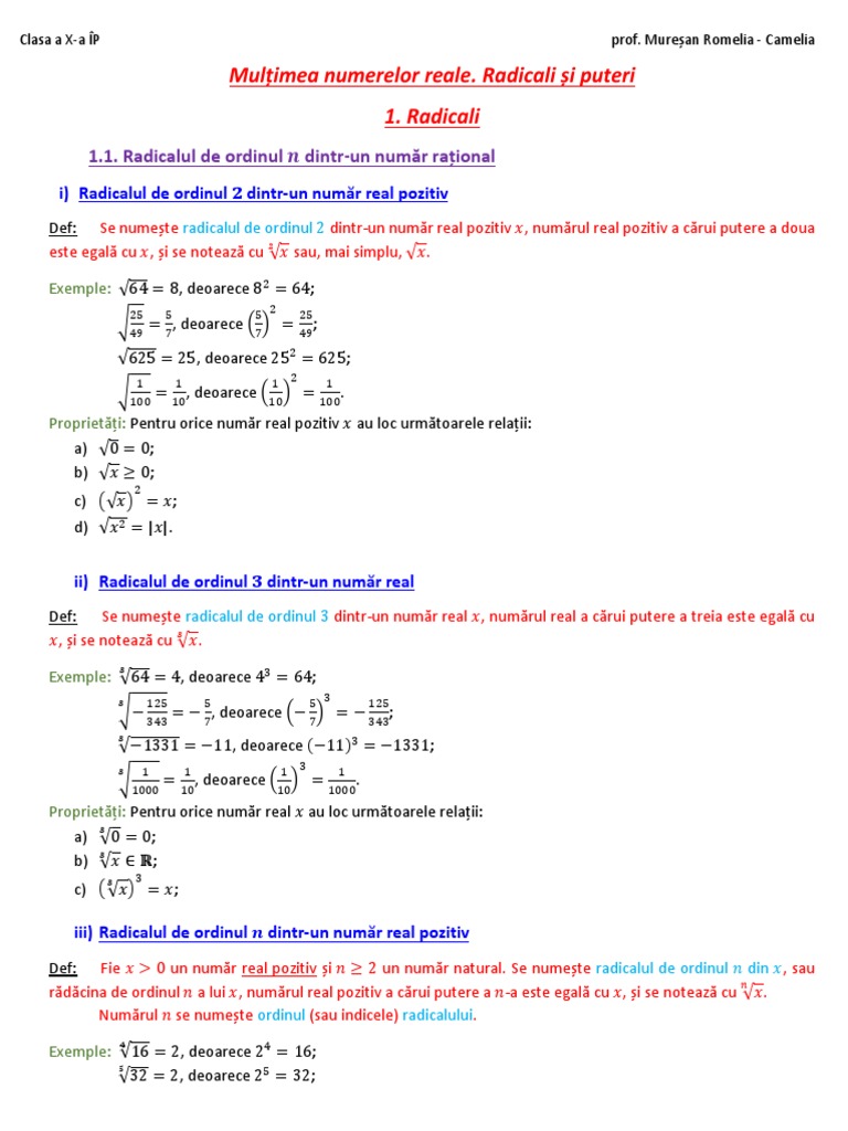 R → r, f(x)= n n*, se numeste functia radical de ordin impar. Radical de ordinul pi (dacă n = pi , atunci n nu este natural) (nu există niciun radical de ordin iraţional).